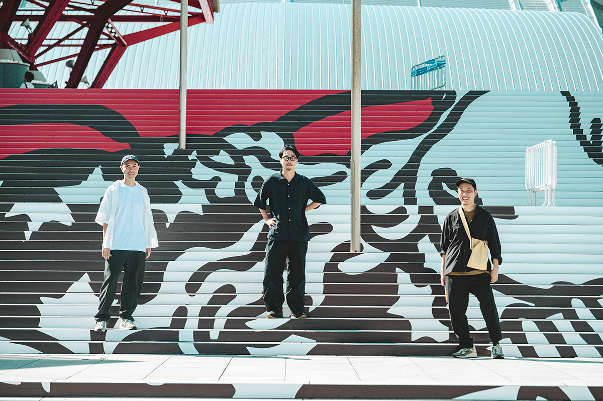 さらに、彼らの大型作品が設置されているお買い物チャンネルQVCジャパン本社ビル「QVCスクエア」にて、GOO CHOKI PARへのインタビューを実施。「すべてのプロジェクトに三人でたずさわる」という彼らに、今回の作品をはじめとするクリエイティブ制作の裏側を聞いた。