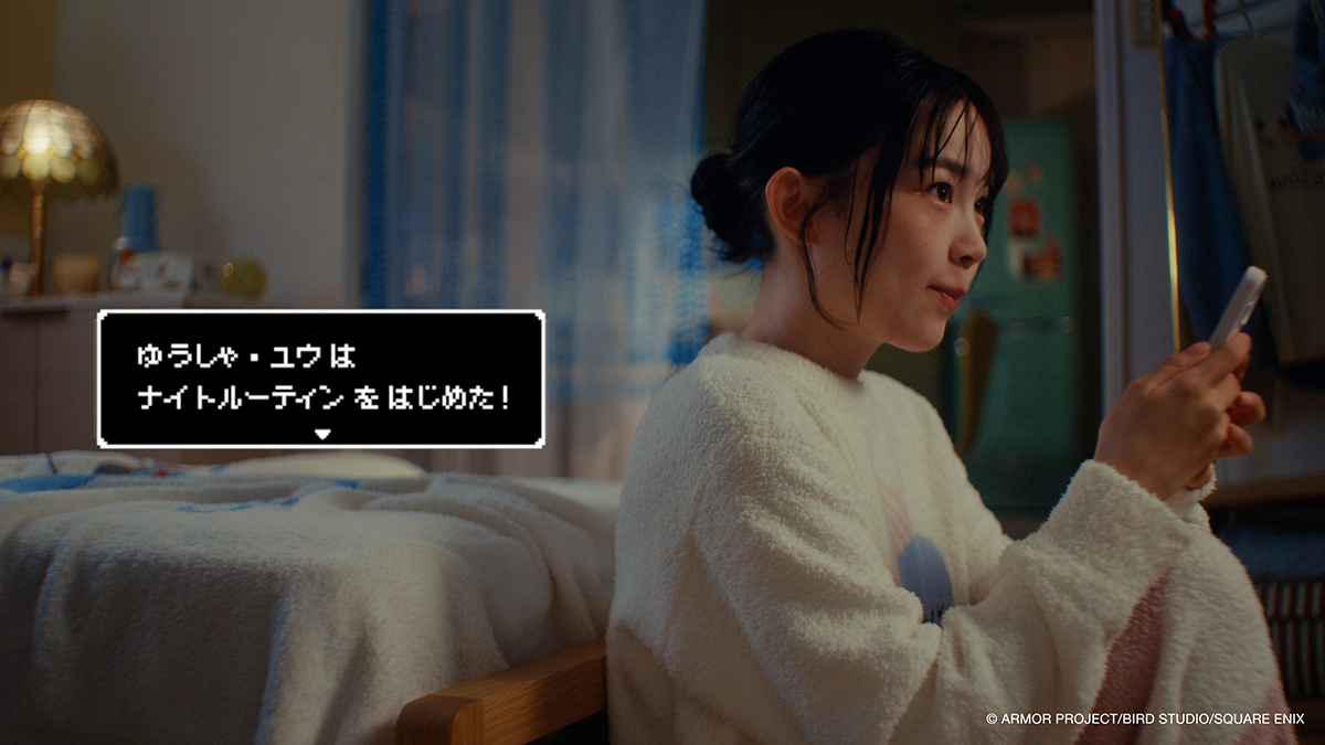 「よるのぼうけん」編には、Netflixドラマ『グラスハート』で注目を集めた宮﨑優が出演。「ゆうしゃ・ユウ」のやすらぎの時間へと向かう旅としてナイトルーティンが描かれる。