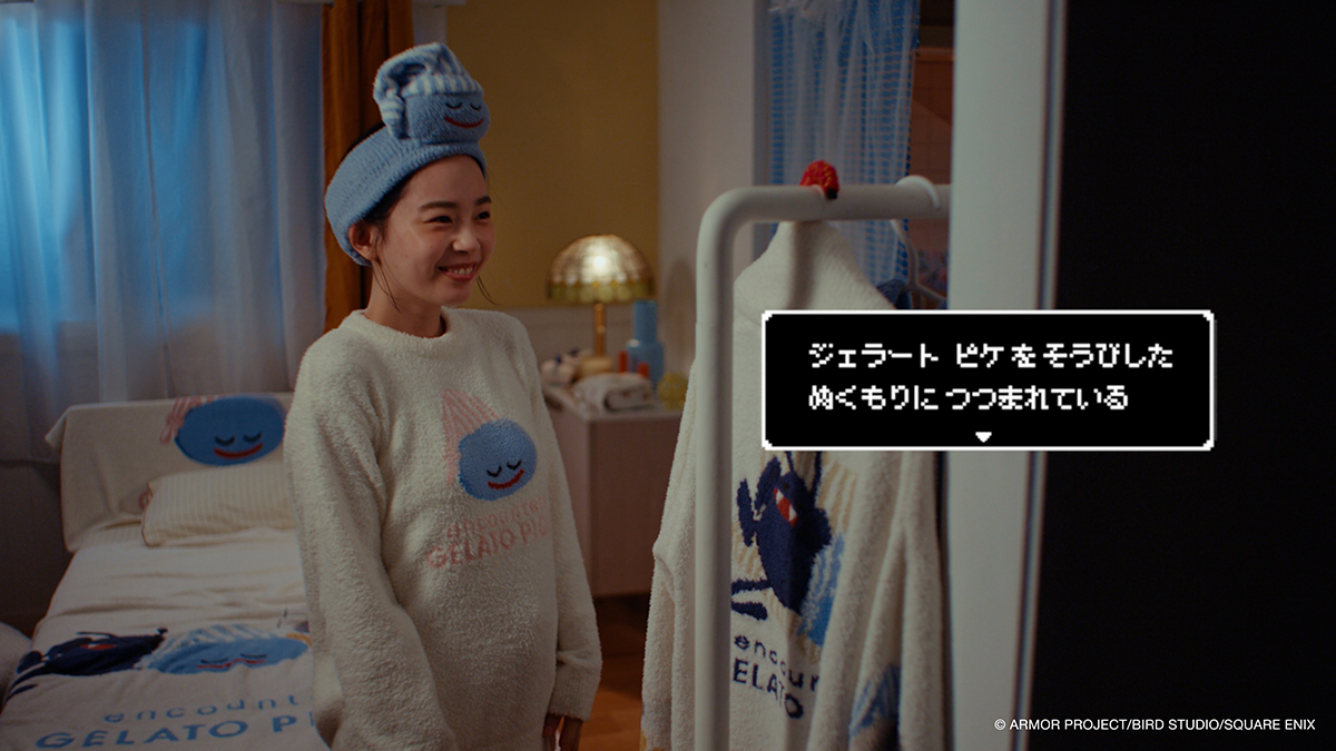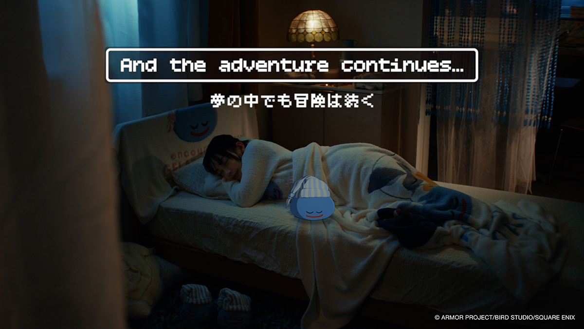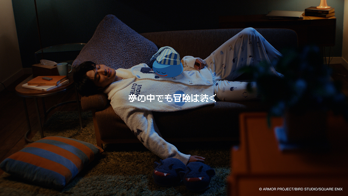 「ふとんのなかのぼうけん」編では宮﨑優、俳優の伊藤絃、ゲーム実況者・TAMAchanが『ドラゴンクエスト』とのコラボウェアに⾝を包み、スライムが寄り添う様子が映し出される。
