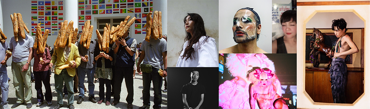 左から)1996,Bread Men at the Venice Biennial 2001 Venice, Italy VENEZIA、和田彩花、MONDO、奈歩、高村月、山田ホアニータ、三浦琉那(左上から時計回り)