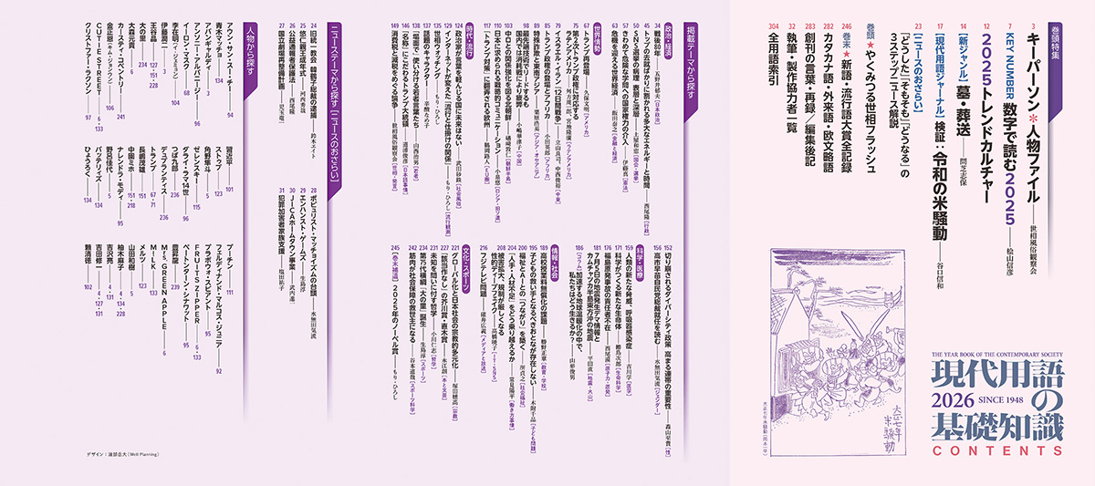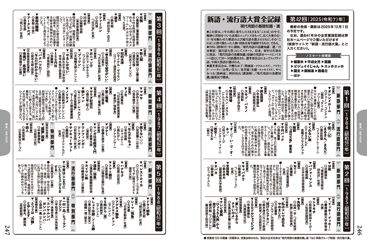 また、2025年のキーパーソンとして、アバンギャルディ、伊藤潤二、柚木麻子、吉田修一、吉沢亮、野呂佳代、角野隼斗、山田和樹、大森元貴、CUTIE STREET、FRUITS ZIPPERを紹介。第1回目からの『新語・流行語大賞』全記録も収録される。