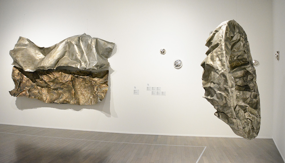 田部光子はふすまをアイロンで「焼い」ているし、白髪富士子の和紙やガラスを「貼る」表現、多田美波の金属を「叩く」表現なども見られる。
