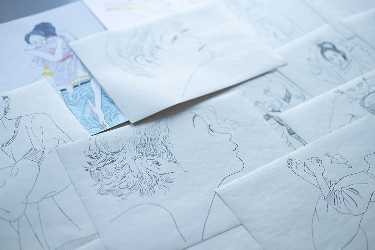 最近、タブレットでイラストを描くことが多いんです。ただ、紙で描いている状態からタブレットに移行することは簡単なんですが、ずっとデジタルで描き続けていると、アナログでうまく描けなくなる気がして。たまにデジタルの手触り感のなさに恐怖を覚えます。私も自分の使うインクや紙といった材料について、もっとしっかり考えたいな。