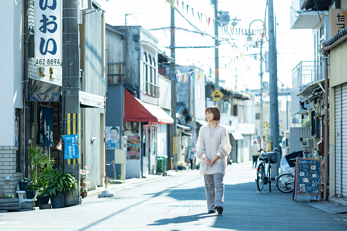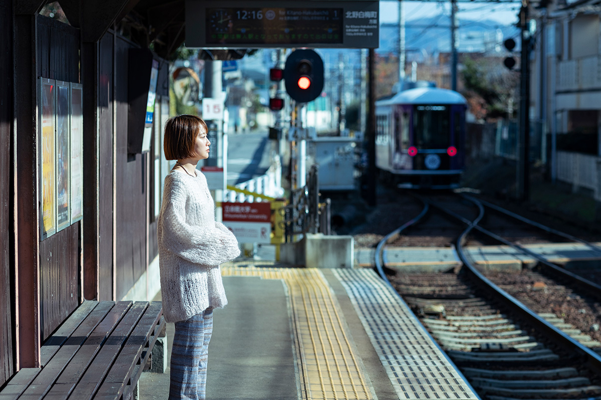 京福電鉄北野線、通称「嵐電(らんでん)」と呼ばれる小さな路面電車。「等持院・立命館大学衣笠キャンパス前駅」が、文字通り大学の最寄り駅。レトロな駅舎に、たなかみさきさんが降り立ちます。