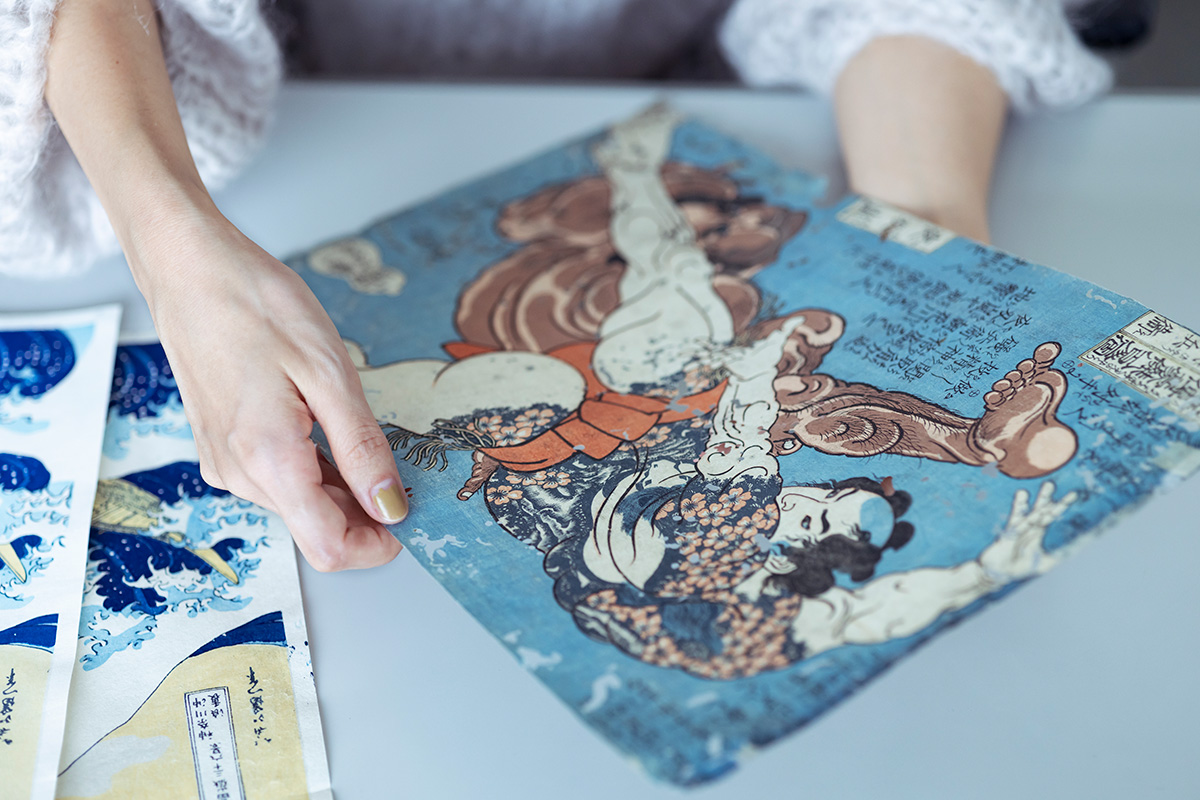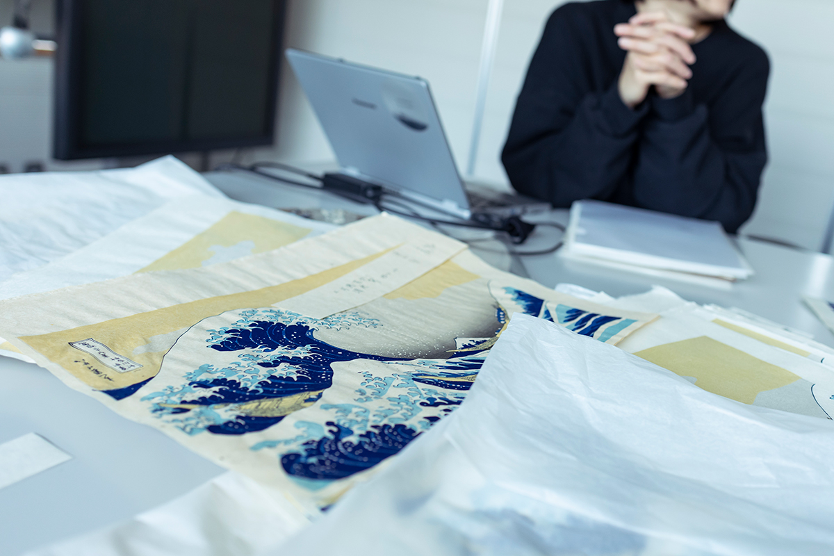 それから研究領域を美術史に移行し、大英博物館では『北斎展(Hokusai: Beyond the Great Wave)』(2017年)や『マンガ展(Manga)』(2019年)に携わりました。『北斎展』をきっかけに、美術の材料に注目するように。またマンガ展では紙や印刷技術、誰が売って誰が読むのかも含めた、総合的な出版文化について研究しました。