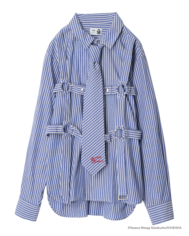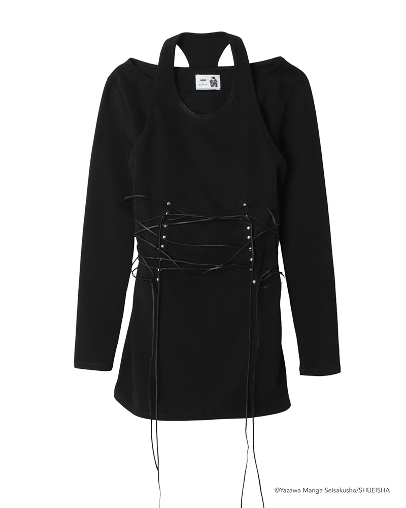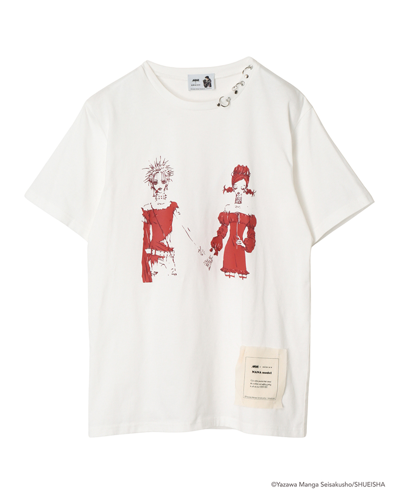 コレクションは、ナナ、レン、シンの象徴的なアイテムやスタイルをモードな解釈でデザイン。ジャケット、ヘムスカート、Tシャツ、レイヤード仕様のトップス、シャツ、エコレザー素材のバッグ、トートバッグなどがラインナップしている。