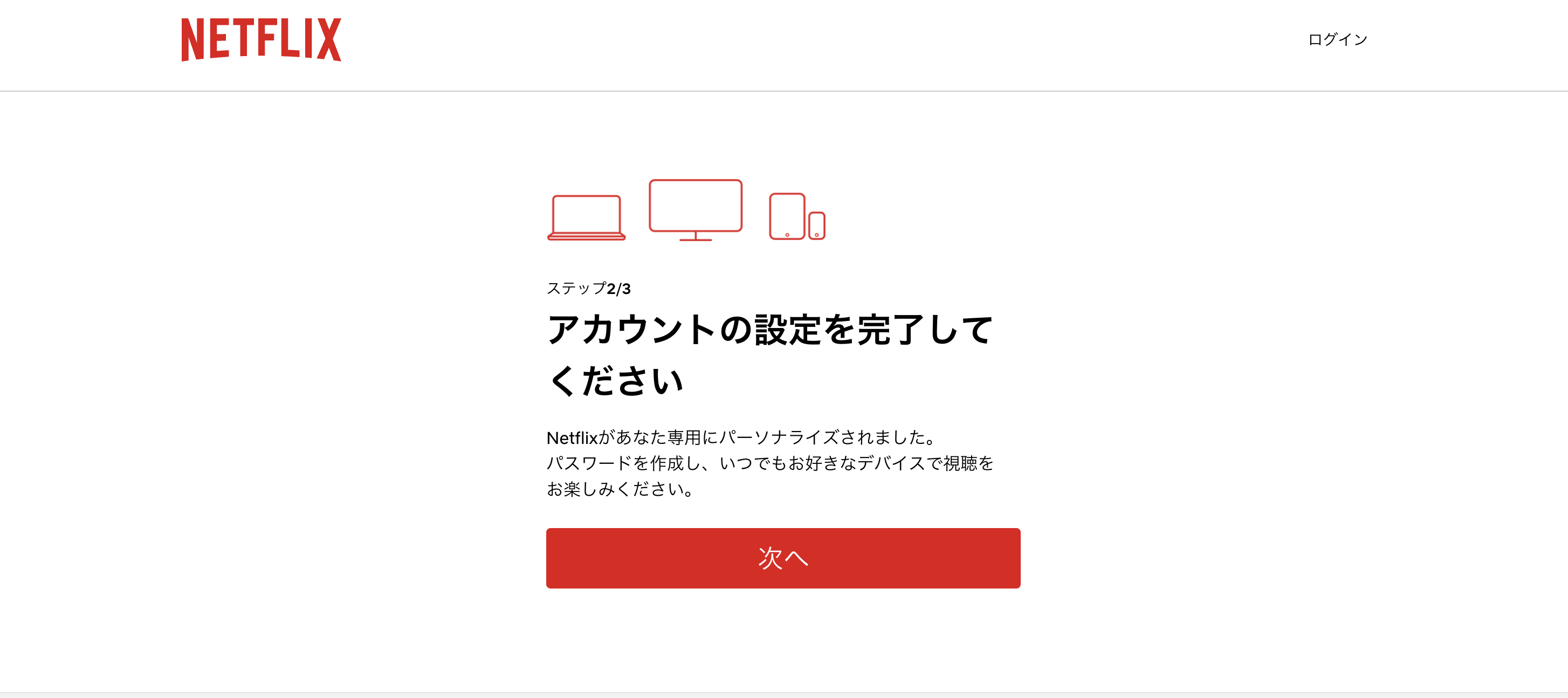 まずはブラウザを使用してNetflixの登録ページにアクセス。アカウントの登録を行う。