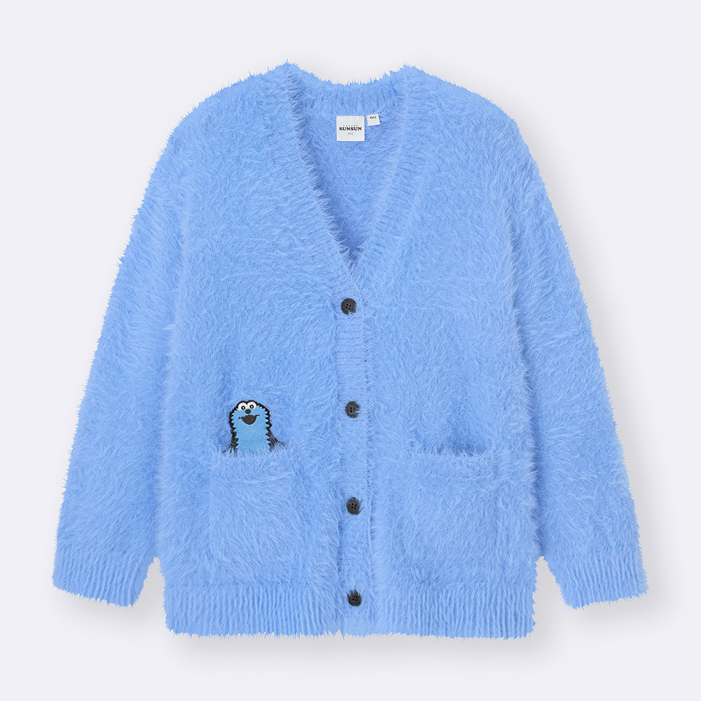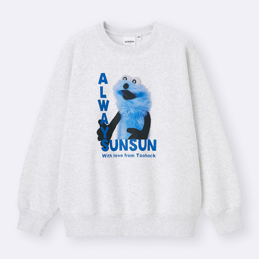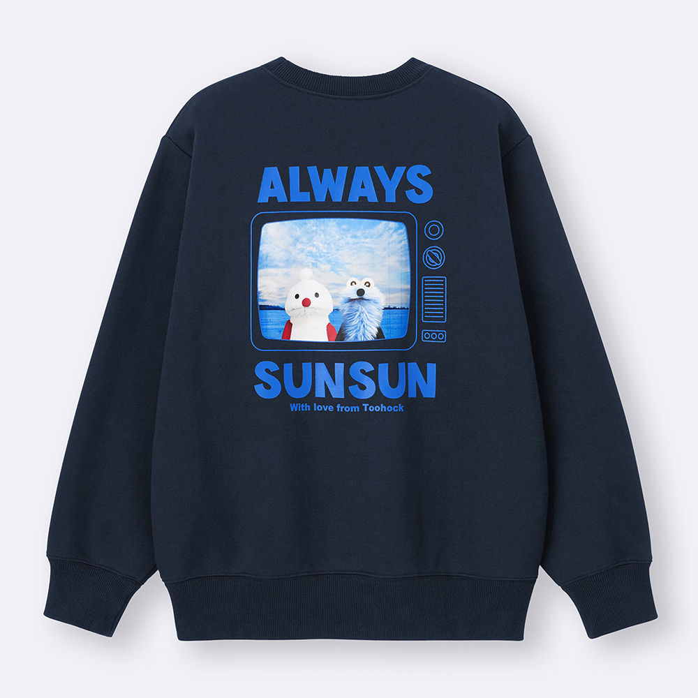 ラインナップは、ふわふわな触り心地のオーバーサイズカーディガンや、オーバーサイズニットプルオーバー、裏起毛のスウェット、座らせることができるスンスンのぬいぐるみ型と蓋を開くとスンスンが手を伸ばす仕掛けがある缶詰型のポーチ、マシュマロフィールラウンジウェア、クロップドフーディスウェット、靴下など。