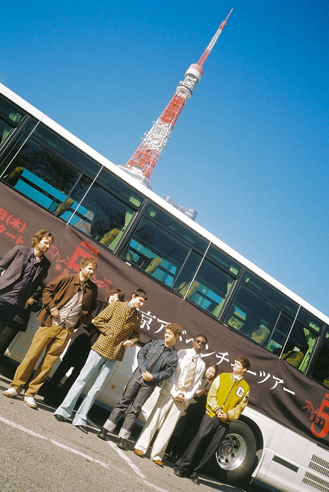 シーズン5公開直前の11月21日には、キャスト陣とダファー兄弟が日本を訪れ、東京タワー近くや中野の『ジンガロ』をめぐるツアーが開催された。左端はツアーで対談した村上隆
