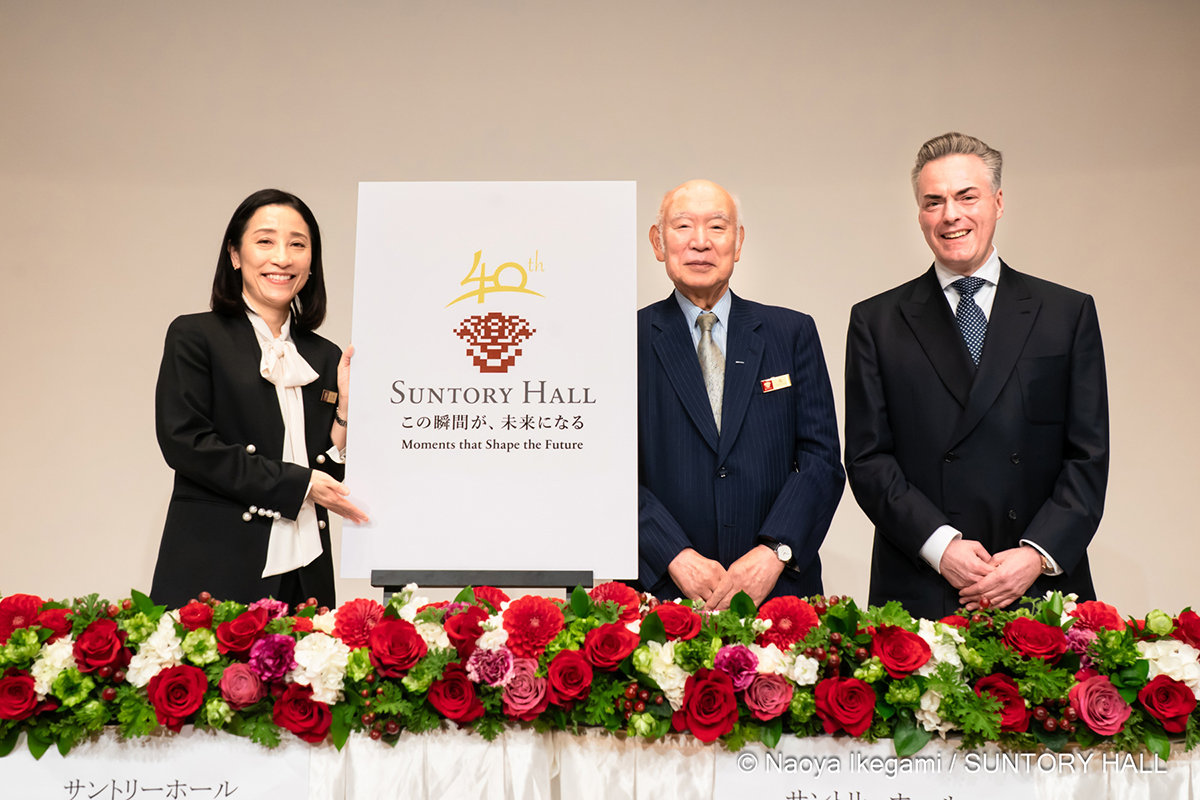 サントリーホール開館40周年の期間は2026年4月1日~2027年2月28日の11か月間。「この瞬間が、未来になる Moments that Shape the Future」を40周年のキーメッセージとして多彩な活動を展開する。このキーメッセージをもととした40周年ロゴマークは、サントリーホールの「響」マークを中心にデザインされた「40th」の文字が未来に向けた意味合いなどを表しているという。