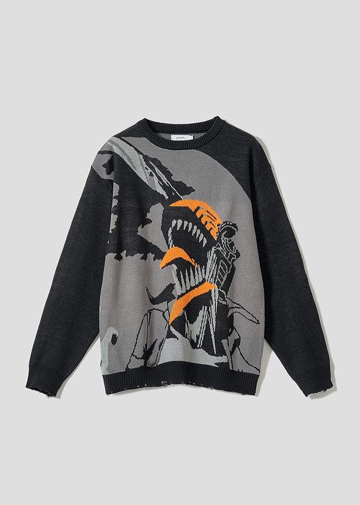 藤本タツキのコミックを原作としたアニメ『チェンソーマン』。今回のコラボでは、デンジやポチタ、マキマ、早川アキ、パワーといったキャラクターや、印象的なシーンがアイテムになって登場する。ラインナップはTシャツ、パーカー、ニット、シャツ、パンツ、ブルゾン、キャップ、ウォレットなど。