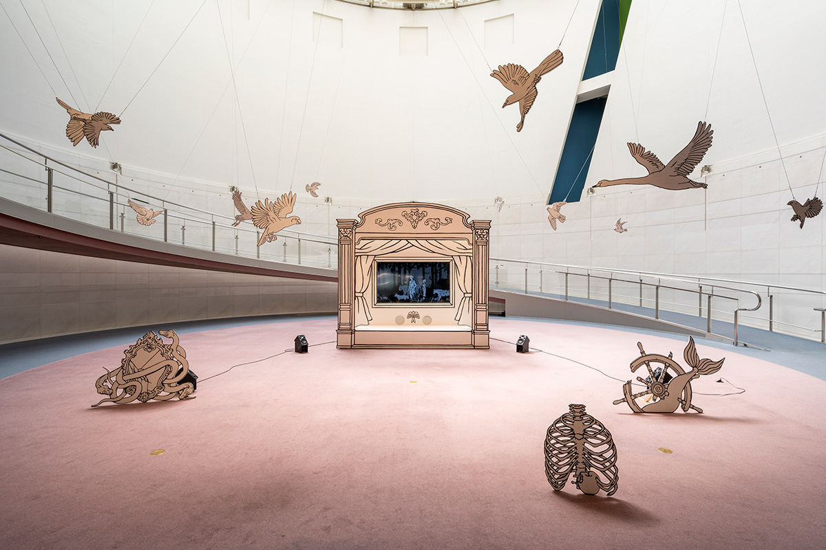 1987年に兵庫県に生まれ、2019年に東京藝術大学美術学部絵画科油画専攻を卒業したみょうじなまえ。『SICF23 EXHIBITION部門』でグランプリを受賞した『You or someone like you』『JEWEL NURSERY』(2020)や『CAF賞2022』金澤韻審査員賞受賞の『人形の家』など、幼少期からの自身の体験をもとに、身体やジェンダーをとりまくナラティブと現代社会のディスコースによる相関関係を照射させる作品を制作してきた。