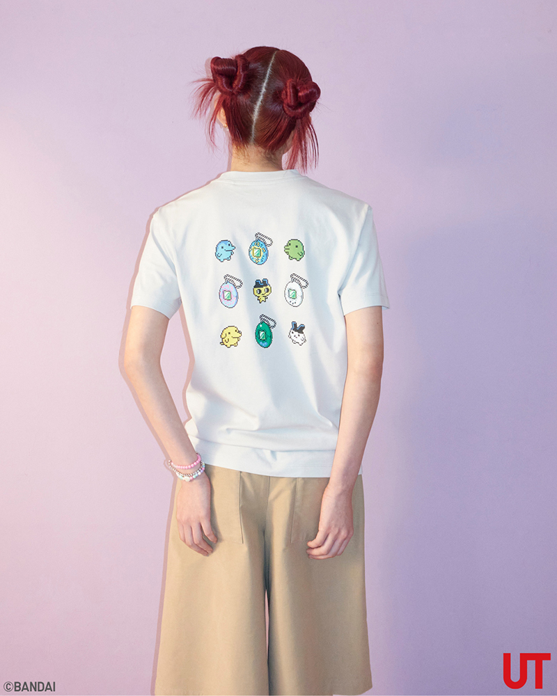 Tシャツはウィメンズ4型。UTオリジナル「たまごっち」は1996年に発売された初代「たまごっち」のデバイスパッケージデザインをオマージュしたもので、初代「たまごっち」の欧米版プログラムが搭載されたGEN1仕様となる。