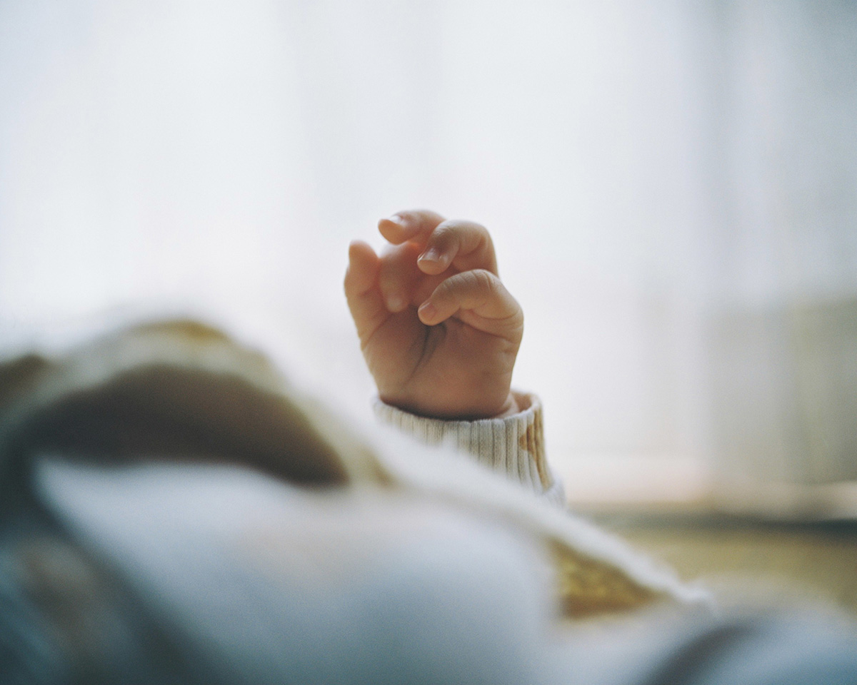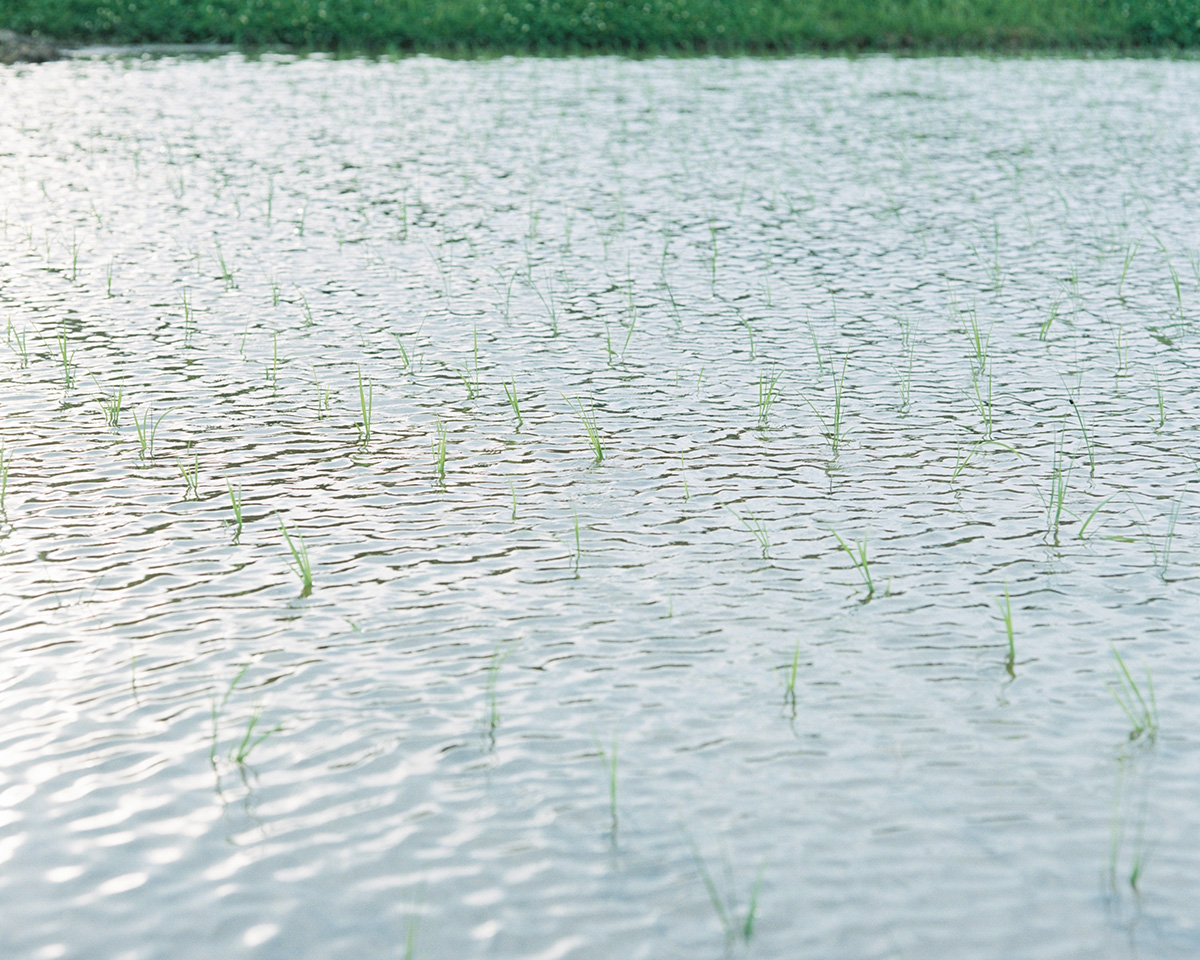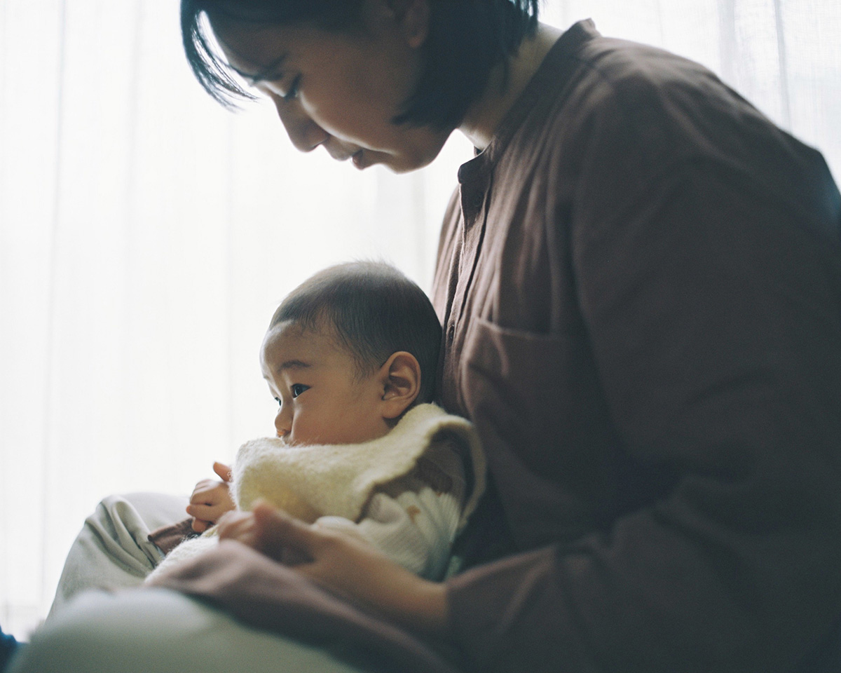 シリーズ「身土不二」において、丹野雄二は普遍的な広がりをもつ実存的な物語を語っている。それは、人間と大地との関係についての物語だ。世界から切り離された、時間の外にある小さな楽園。そこにあるのは、「どこか別の場所」となりうる日本であり、都市の喧騒や狂騒から遠く離れた、心地よく生きられる「別世界」である。時間が止まったかのように感じられ、再び時間の流れを本来のリズムで感じ取ることができるこの瞬間は、なんと優しいことだろう。家という親密な空間の中で一瞬一瞬を味わい、自然が自らのリズムを取り戻すのを受け入れる。繊細さに満ちた彩度を抑えたこれらのイメージの中には、要素の「物質性」が感じられる。赤ん坊の手のやわらかさ、農夫に撫でられる麦畑の中の母親のやさしさ、花や食事の匂い――素朴でありながら共同体的な営みを思わせるそれらの感覚。すべてが、きわめて穏やかな雰囲気の中にある。希望を与えてくれる、ひとつの別世界である。