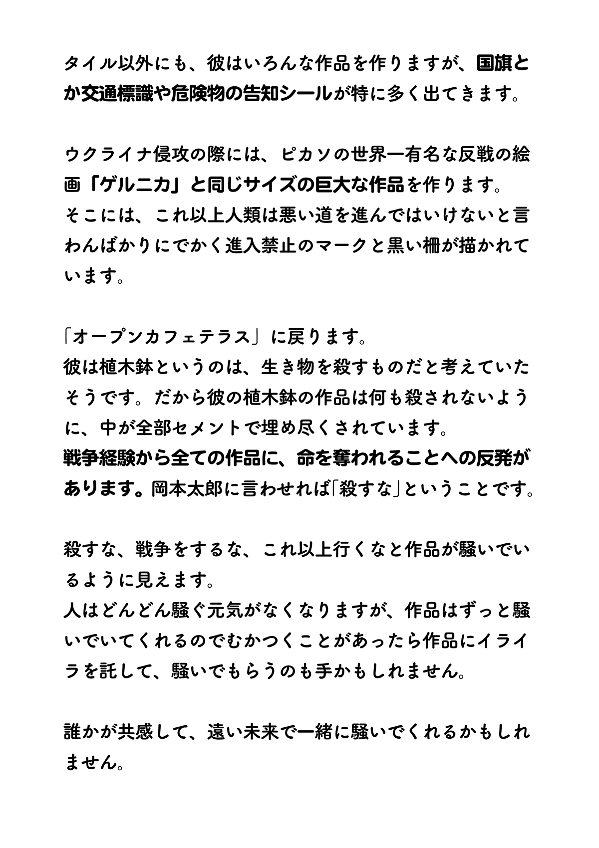 世の中には、さまざまなコンセプトの美術作品が存在します。理解できないものもあるけれど、少しでもヒントを得られれば、美術を楽しむスタートラインには立てるはず。トラの親子とともに、美術の見方や面白さを学んでいきましょう。