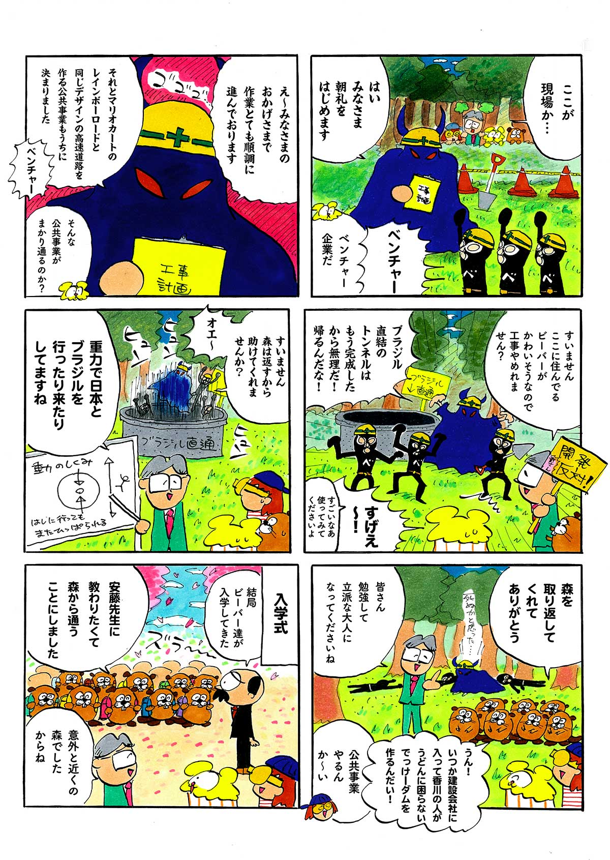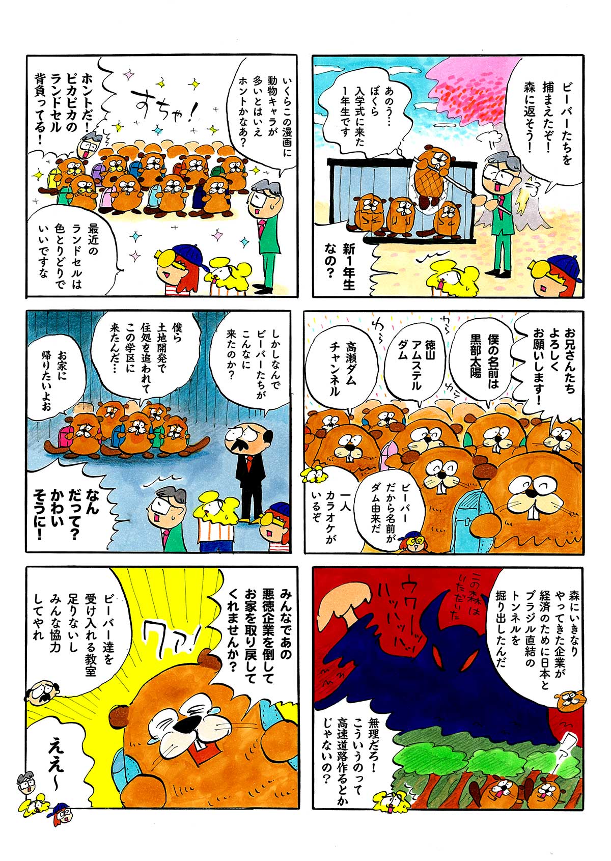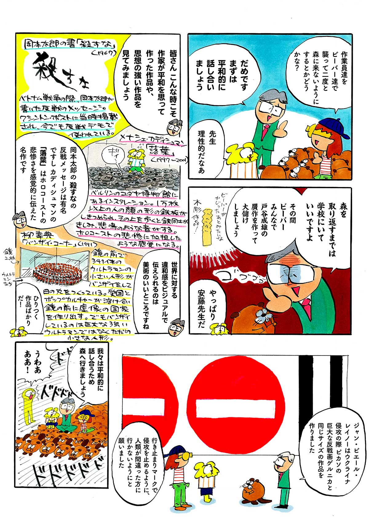 4月、入学式の日。校庭の桜の木にビーバーの大群が現れ、ガリガリとかじりはじめた!? 土地開発で森を追われたビーバーたちと、謎のベンチャー企業。平和的解決をめざすトラちゃんたちが取り出したのは、反戦アートの力で——。